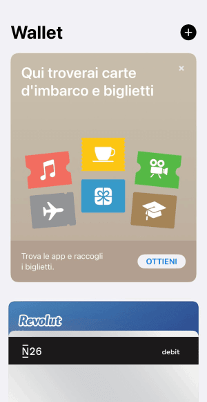 - Vai nell’app Wallet (già presente nei dispositivi iOS)