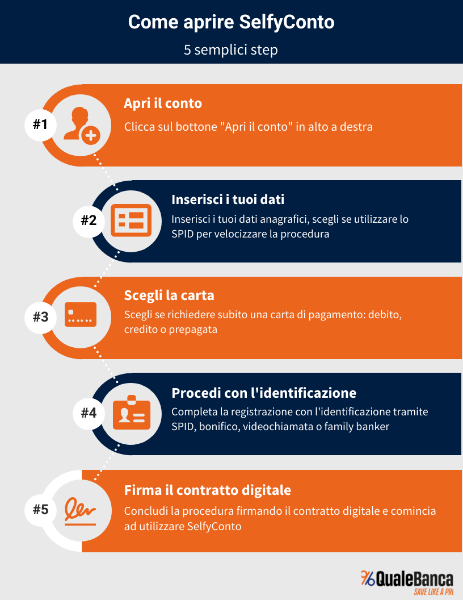 Puoi trovare tutte le informazioni dettagliate nella nostra guida su come aprire conto Mediolanum SelfyConto.